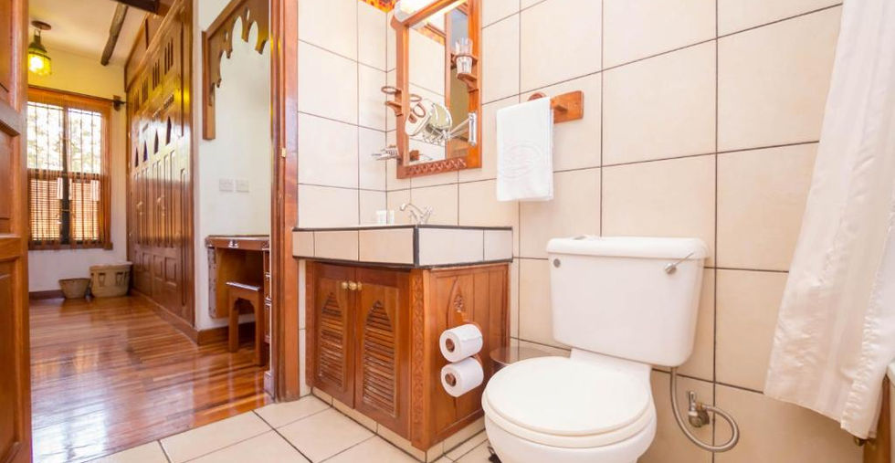 Amenities include an outdoor swimming pool set within Swahili-inspired gardens, boutique gym and spa (massage, body treatments, steam rooms), Café Chumba, The Tavern Bar & Restaurant, beauty salon, landscaped courtyards, and spacious self-catering apartments.